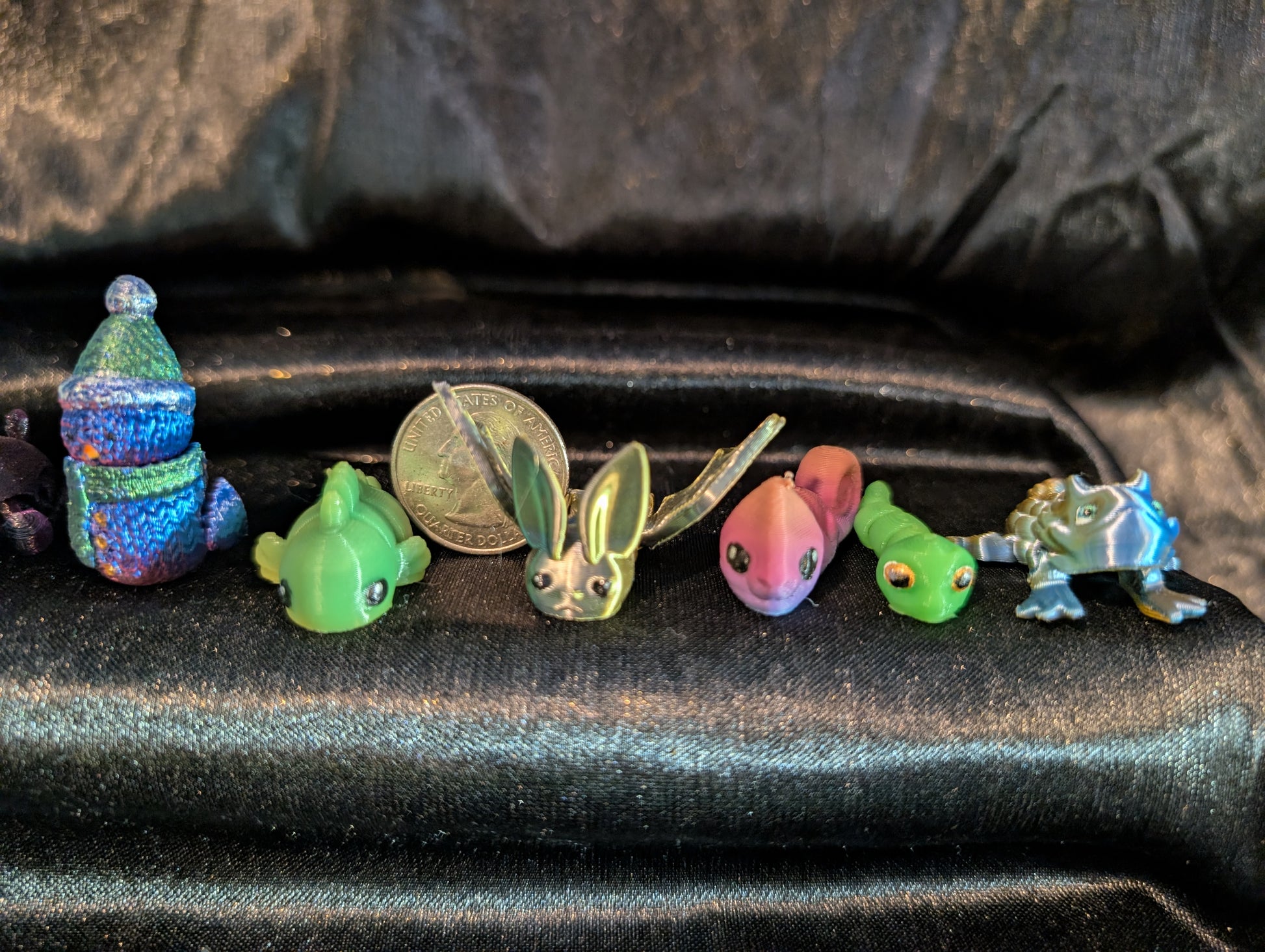 Twist lock container filled with micro prints. Guarantee multiple variants of micro prints in each container. Printed in PLA eyes painted with acrylic. Colors and designs will vary in each container